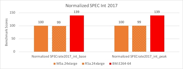 Figure 1: Normalized SPECrate integer comparison of Oracle AMD and AWS AMD instances