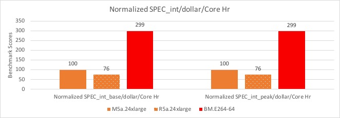 Figure 2: Normalized SPECrate integer/dollar/Core Hr comparison of Oracle AMD and AWS AMD instances
