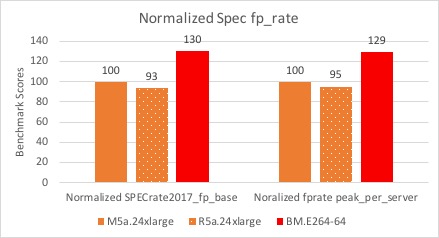 Figure 3: Normalized SPEC_fp_rate comparison of Oracle AMD and AWS AMD instances