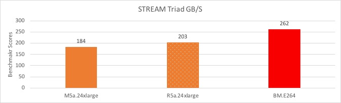Figure 5: STREAM Triad GB/S comparison of Oracle AMD and AWS AMD instances
