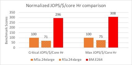 Figure 8: JOPS/$/Core Hr scores comparison between Oracle AMD and AWS AMD instances