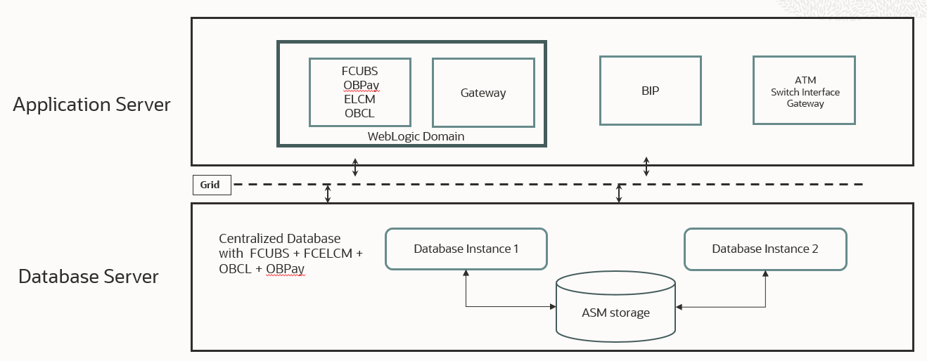 Whereas Flexcube and Oracle banking solutions can be customized based on customer’s needs, a typical Flexcube deployment consists of centralized database layer with redundancy through cross region or Availability Domain replication and application layer consisting of key FSGBU products such as Flexcube UBS, Payments (OBPay), lending (OBCL), Limits & Collateral Management (ELCM) etc.
