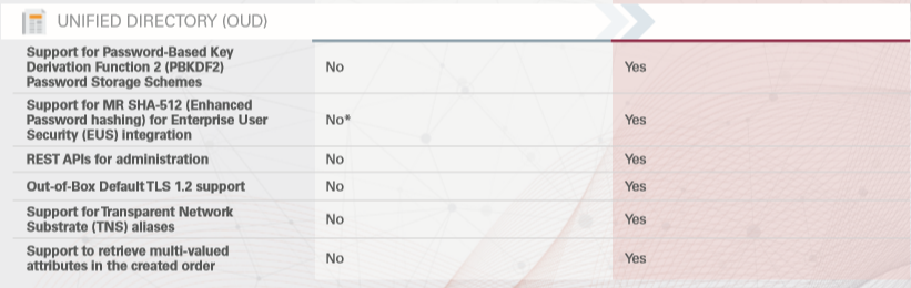 Oracle Internet Directory (OID) 12c is also being updated for improved replication and resiliency. With OID, you’ll see: