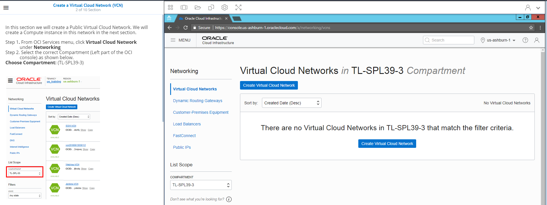 Best of all, the instructions and the Oracle Cloud Infrastructure Console are visible in a single split screen. No more switching back and forth between browser windows to read instructions.