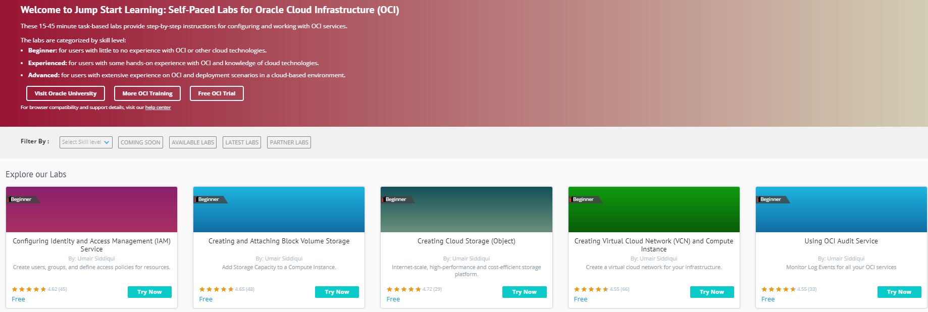 In our endeavor to enable, empower, and expedite our customers, we are delighted to introduce Jump Start Learning. These self-paced, hands-on labs provide a live environment with step-by-step instructions for performing different tasks in Oracle Cloud Infrastructure.