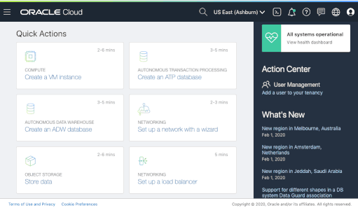 • A full Linux shell, with key developer tools for interacting with Oracle Cloud Infrastructure services, and preinstalled language runtimes