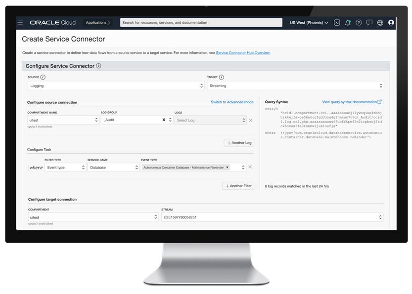 Logging uses fluentd, a widely adopted, open source data collector, so customers can not only centralize audit, infrastructure, database, and application logs, but easily ingest logs from custom sources. Logs are stored in a CNCF CloudEvents-compatible format to maximize portability and enable visibility across all logs in one clean cross-stack view. Customers can then create rules to automatically act on logs to trigger a function, send a notification using PagerDuty, or send logs to nearly any destination or tool through our Kafka-compatible Streaming service.