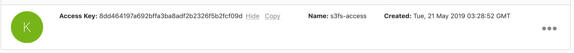 Give the key a meaningful name (for example, s3fs-access), and then click Generate Secret Key.