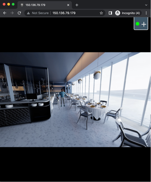The following graphics show an example pixel streaming application running on an OCI GPU VM.