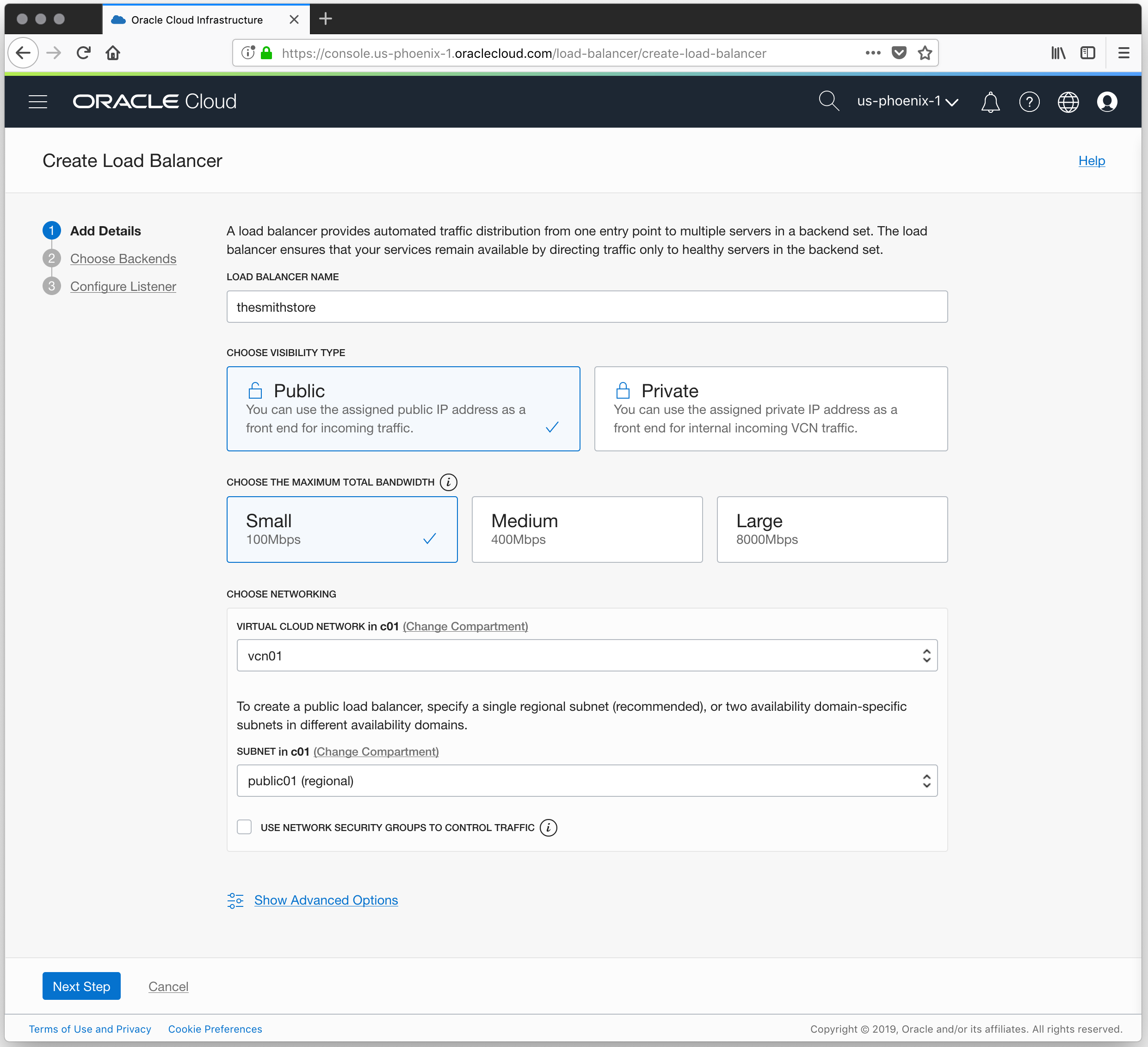 In June, the Oracle Cloud Infrastructure Console was updated with a new workflow for creating load balancers. The workflow simplifies the process of deploying a load balancer into three steps: