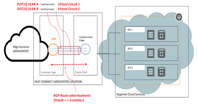 There are multiple FastConnect transit PoPs (ingress/egress) for a region and multiple FastConnect routers per PoP. Each transit PoP has access to each of the availability domains.