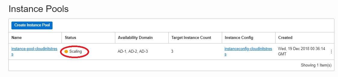 We used the newly launched instance to generate the instance configuration and then launched an instance pool of size 1 and selected which availability domains to use. Note that you should ensure that you have available limits to launch new instances in the pool.