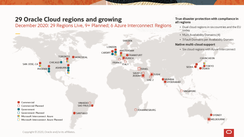 For of GPU, Oracle is introducing methods and instances working with NVIDIA’s A100 accelerator. We gauged the need and are adding more racks across regions in coming weeks to meet the aggressive demand for our A100 NVIDIA GPUs. We have A100 available in 17 out of 29 regions all around the world at an industry-low, on-demand price of $3.05 per GPU per hour. This bare metal instance joins our cluster network architecture, allowing customers to scale up to 512 GPUs in a single cluster for large-scale artificial intelligence training or HPC workloads.