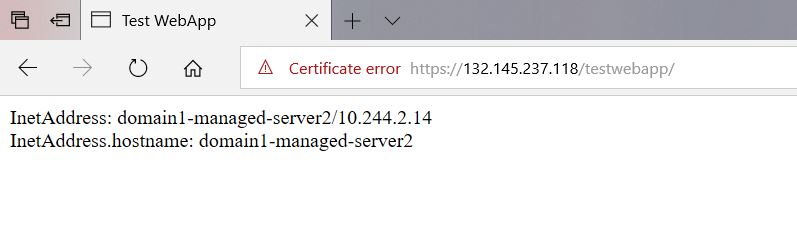 [opc@workvm weblogic-kubernetes-operator]$ kubectl get services -n domain1 NAME TYPE CLUSTER-IP EXTERNAL-IP PORT(S) AGE domain1-admin-server ClusterIP None <none> 30012/TCP,7001/TCP 4d domain1-cluster-cluster-1 ClusterIP 10.96.57.119 <none> 8001/TCP 1h domain1-managed-server1 ClusterIP None <none> 8001/TCP 4d domain1-managed-server2 ClusterIP None <none> 8001/TCP 4d domain1-cluster1-lb-ext LoadBalancer 10.96.154.210 132.145.237.118 443:30862/TCP 4d