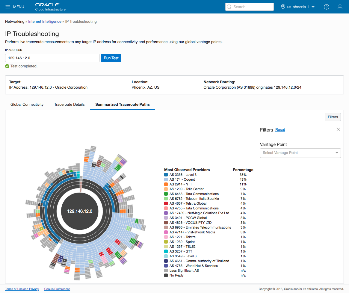 Internet telemetry: Understanding historical internet performance between multiple worldwide locations and your cloud infrastructure, and being able to test that performance in real time, can help ensure that your users are experiencing the best possible application performance. In addition, this performance data can be used for dynamic steering of inbound traffic, enabling you to direct or balance incoming traffic across multiple cloud locations.