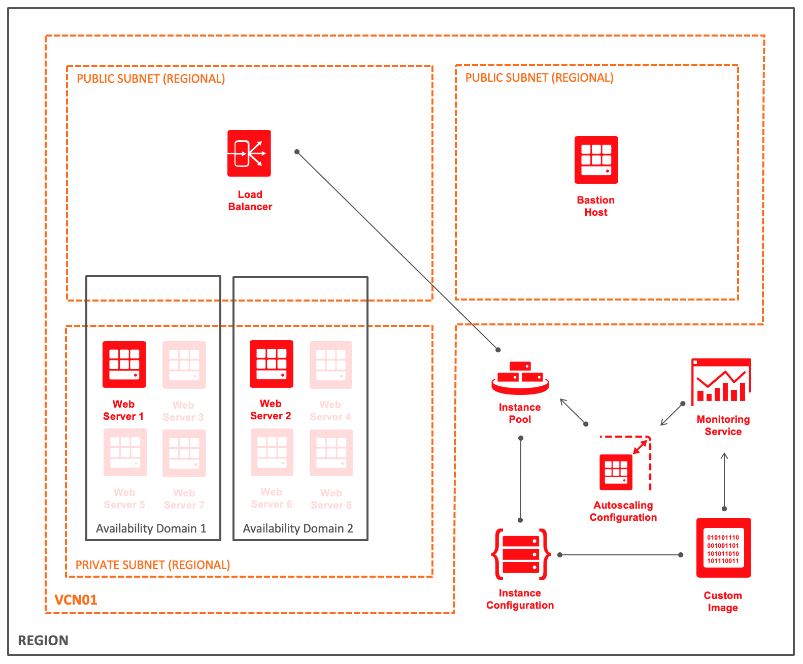 Additionally, instance configurations require references to subnets and availability domains, for instance provisioning.