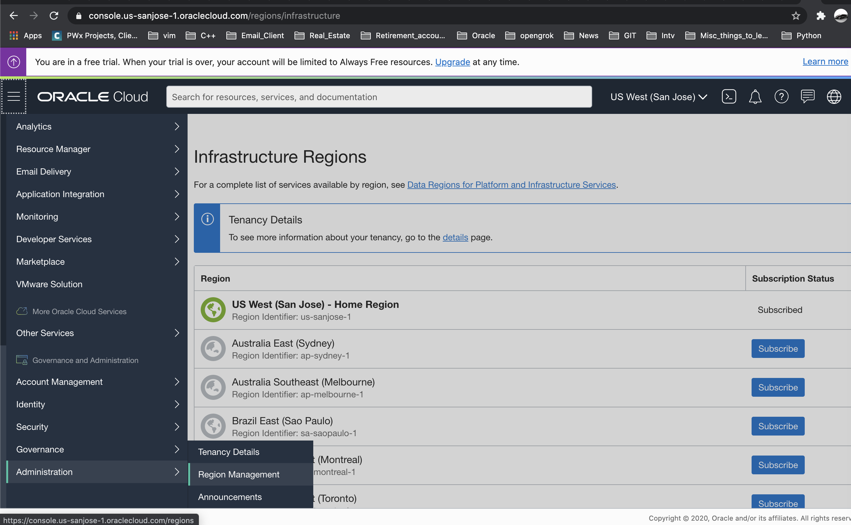 Use the same region that you registered while creating your free tier account. To find the region name to be used in the config file, log in to Console.