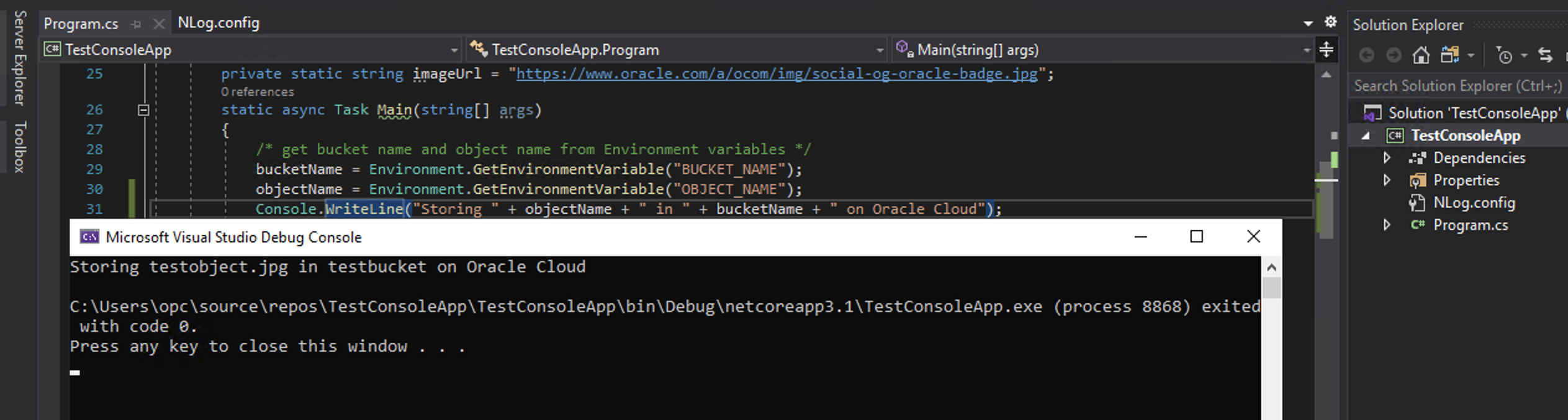Using Oracle Cloud Infrastructure SDK for .NET with Visual Studio