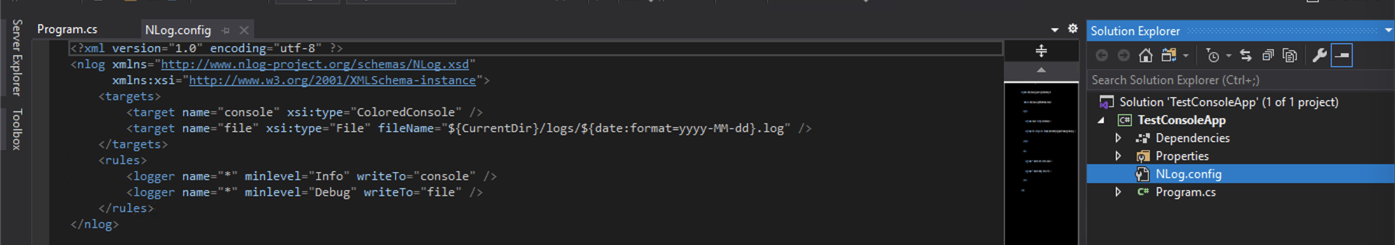 Use the same NLog.config that the Oracle Cloud SDK for .NET is using. Copy this NLog.config to the root folder of the TestConsoleApp project. You can do either use the file explorer of your operating system or by right-clicking the TestConsole App, then choosing Add, New Item …, and the text file. Rename the text file to “NLog.config,” and copy the contents from the .NET SDK NLog.config to this one, you just created.