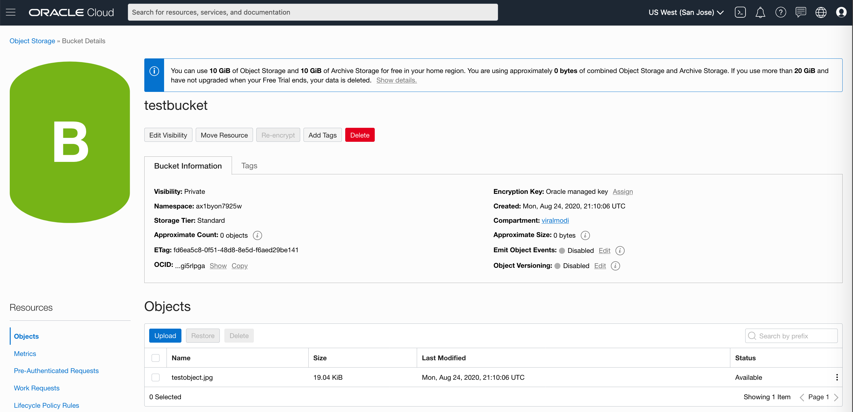 Console.WriteLine("Storing " + objectName + " in " + bucketName + " on Oracle Cloud");