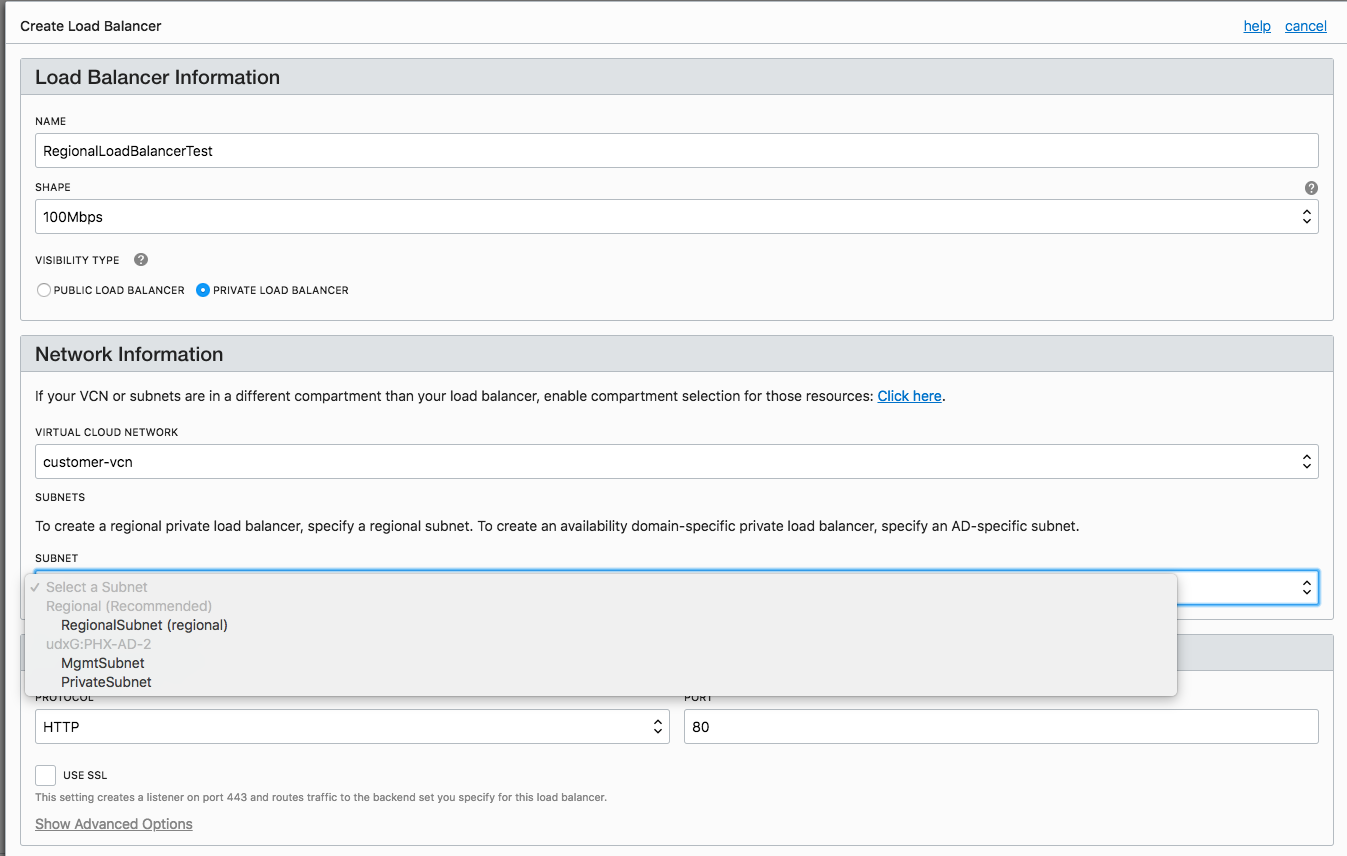 When you deploy a regional load balancer, you must first have a regional subnet (you can’t deploy a regional load balancer is an availability-domain-specific subnet).