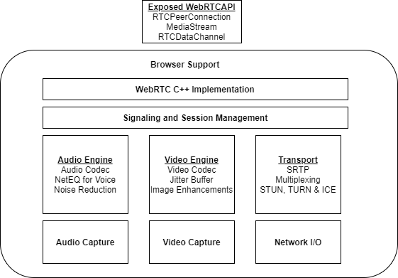 WebRTC allows peer-to-peer communication between two browsers in a simple and easy manner without needing to install any plugins or extra software. WebRTC is continuously evolving with new features and improvements since its introduction in 2011. WebRTC capability is built into modern web browsers, such as Chrome and Firefox. The second peer in this interaction doesn’t need to be a browser but any component that can understand and communicate through WebRTC, which opens its applicability to a broader set of use cases than just browser-to-browser real-time communication (RTC).
