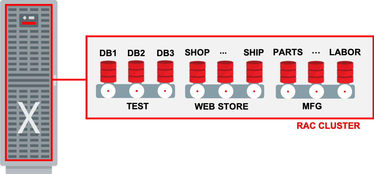 Alternatively, the administrator can create separate CDBs for different lines of business or for different use cases. For example, one Container Database could be created as the TEST system to keep the test workload separate from production database. The TEST CDB would always be patched to the latest Release Update (RU) and wouldn’t have a standby database.  While the WEB STORE CDB would contain production databases and would have a remote standby. It would also take a less aggressive patching strategy by using Release Update Revisions (RUR). The MANUFACTURING CDB would also house production database but since they belong to a different line of business, they will go into a separate CDBs.