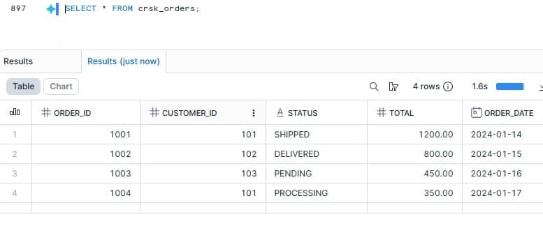 3. Real-Time Reads: Autonomous AI Database reads the current Iceberg snapshot every time a query runs. Any new data inserted in Snowflake is immediately visible in Oracle without any refresh step.