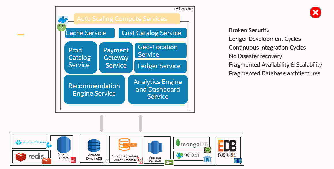 As a final example of the synergy, efficiency, and multiple benefits of the Oracle converged database, let’s look at how eShop.biz made an architectural change at the database layer.