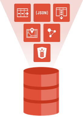 As the following graphic illustrates, a converged database operates in a similar way. It supports the seamless mixing of workloads, data types, and algorithms. It enables SQL, as well as transactions across any data type; it provides unified security and management across all data; and it prevents data fragmentation and copy contagion.
