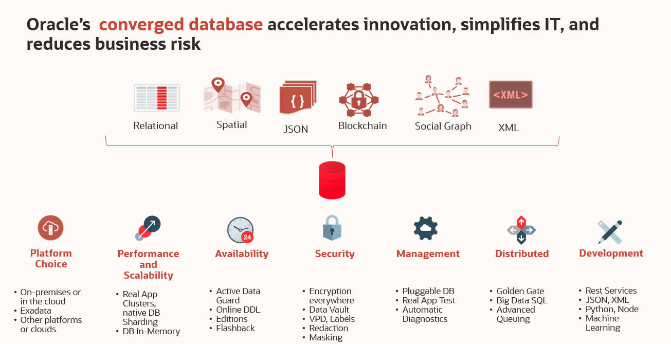 Oracle’s converged database delivers synergy, efficiency, security, and performance within a single, unified system.