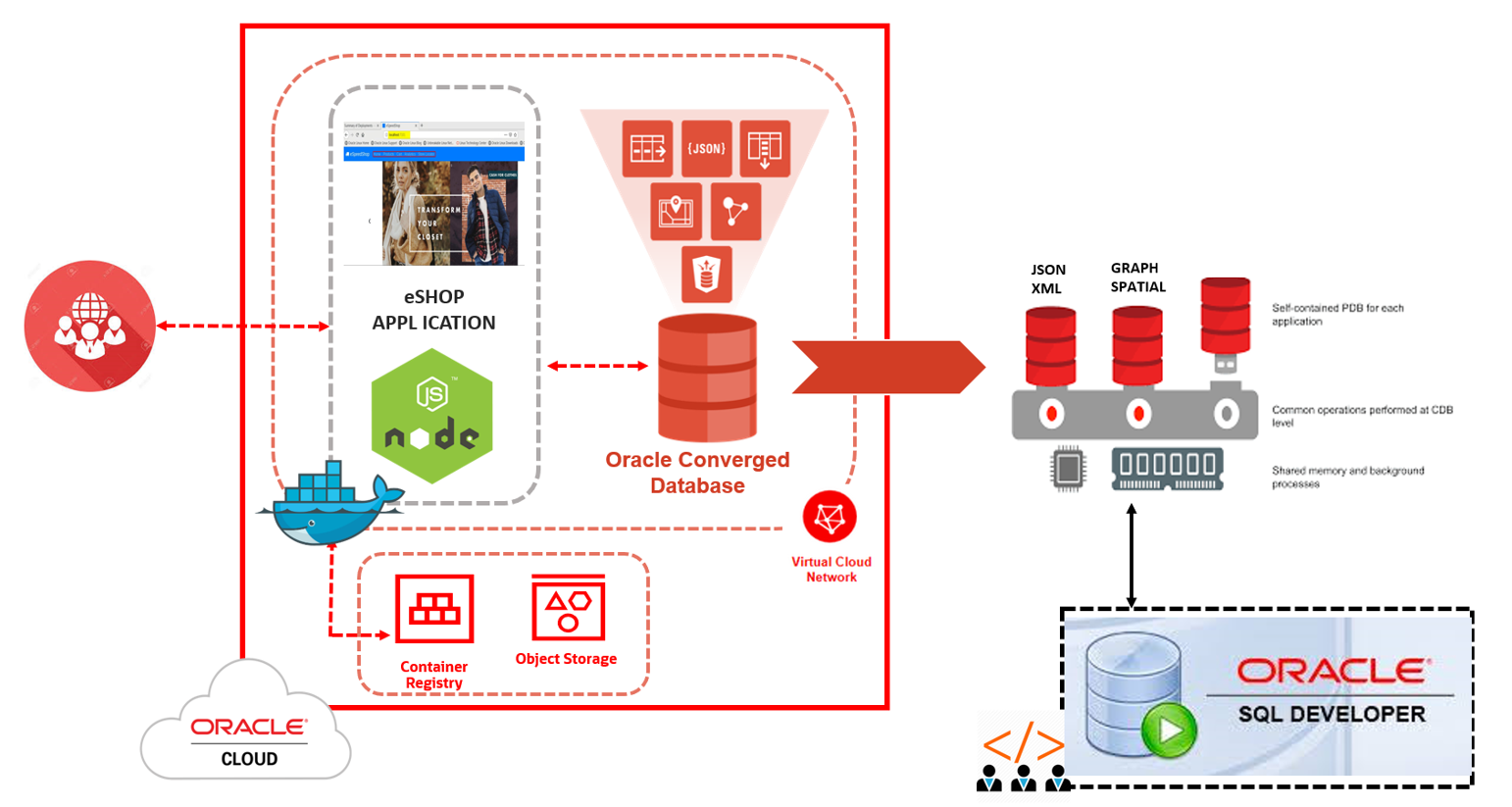 eShop.biz soon realized that the multi-model flexibility of Oracle’s converged database encompassed relational, JSON, XML, graph, spatial, and OLAP. It also facilitated multiple workloads (including transactions, analytics, in-memory, IoT, steaming, and blockchain), while offering multitenant functionality with container, isolation, orchestration, and scale-out with transactional consistency.