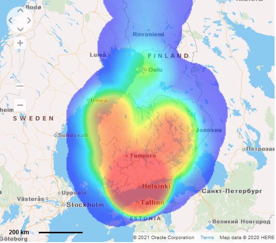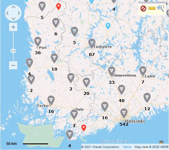 We further improved the application based on feedback from both the volunteer team and the end users. We added several maps to the application so it would be easier for end users to understand the exposures situation in Finland. At first, the team was under the impression that adding maps would require some investment. Although we knew that the spatial functionalities (Oracle Spatial) in the database were free, the team was unaware we could use the map service (Oracle Maps Cloud Service) from an Oracle APEX application completely free of charge if employed in combination with the maps.oracle.com API and available Oracle APEX plugins.
