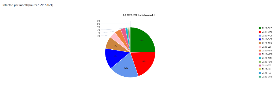 The Analyses section (Figure 14) offers deeper analyses of the COVID-19 situation in Finland. Currently this information is available only in Finnish, but Oracle APEX provides a full translation infrastructure if the team wishes to provide this in other languages in the future.