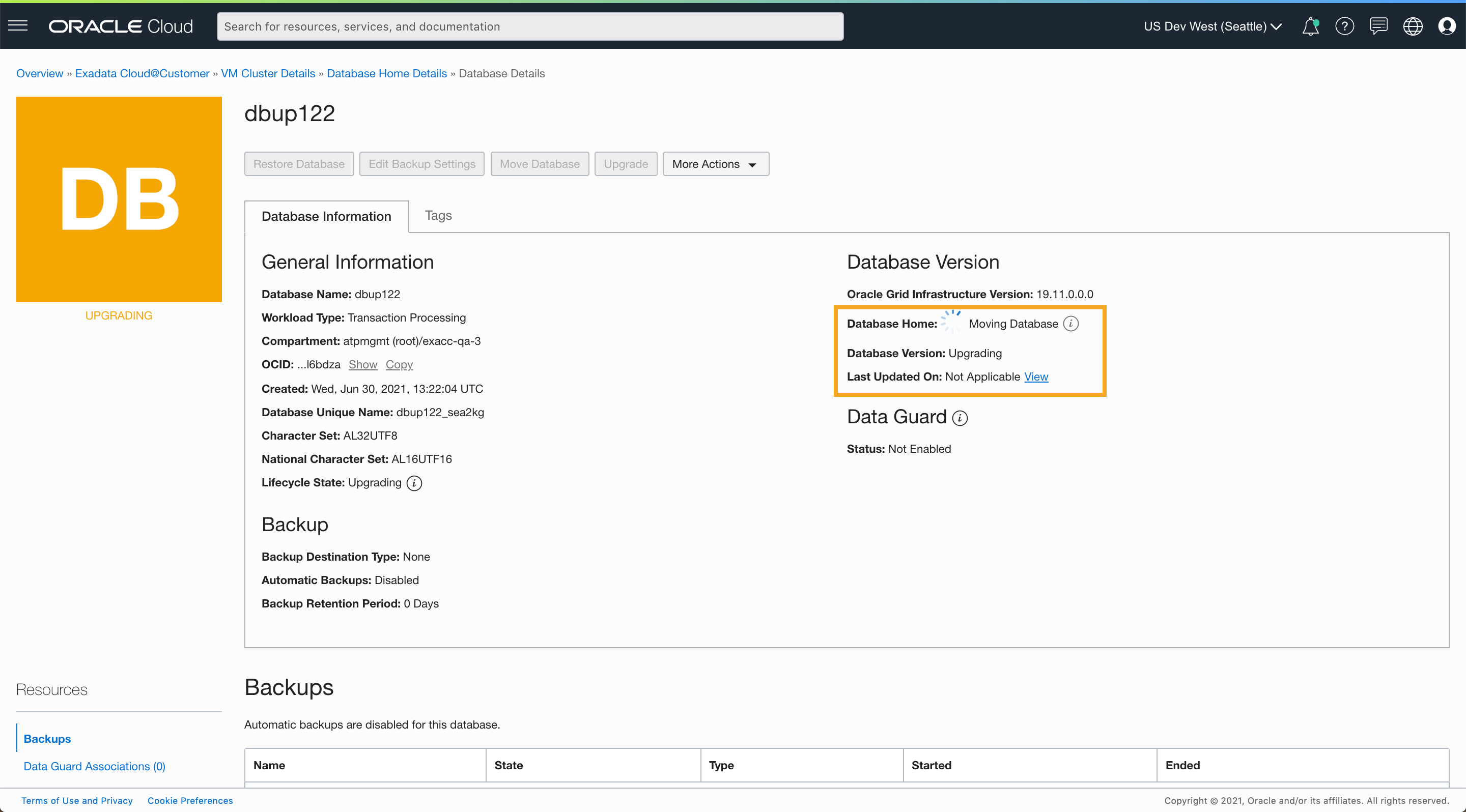 - Upgrade existing databases to Oracle 19c by moving the database to a 19c Oracle home within the same VM Cluster