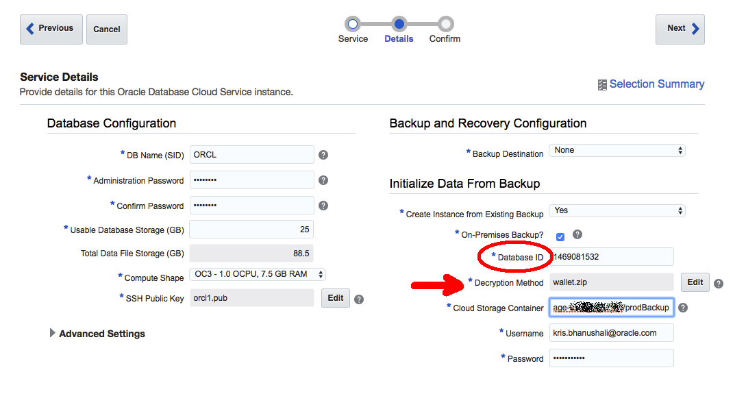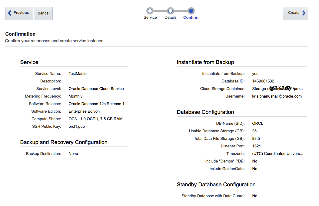 We also need to provide the storage container where the backup is located, and the credentials for your backup cloud service. Even if ‘prod‘ exists on-premise, as long as you ship a backup to the oracle storage cloud, you can use this method to restore it as a new service. Backup containers are named in the format StorageAPIEndPoint/DomainName–ContainerName. To find out your Storage API endpoint or domain Name or backup container name, log into your storage cloud service account or talk to your storage cloud service or domain administrator.
