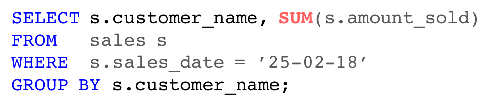 Analytics typically perform a small number of simple calculations on large amounts of data, often hundreds of gigabytes to petabytes of data. For example, a typical analytic query will apply a simple predicate (e.g. filter sales by date or region) and then perform a simple aggregation function (e.g. sum or average).
