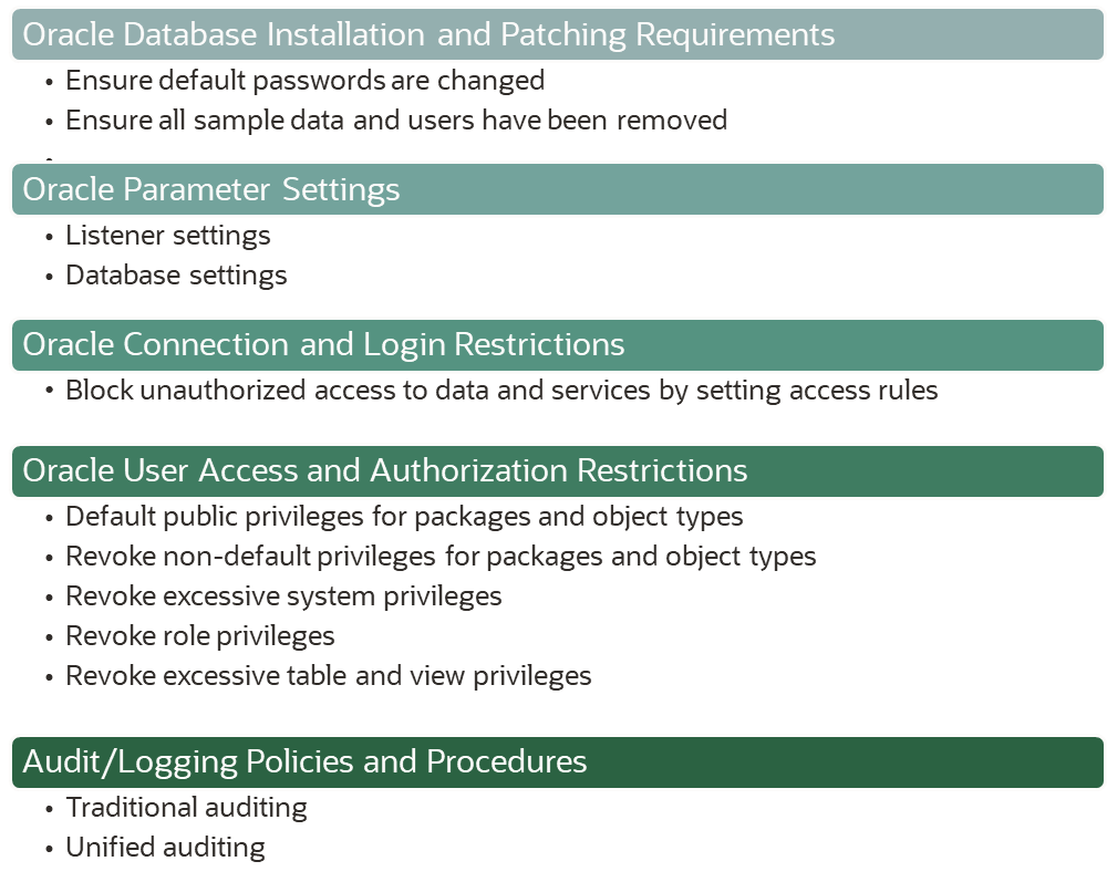 CIS provides comprehensive configuration coverage for Oracle database, including: