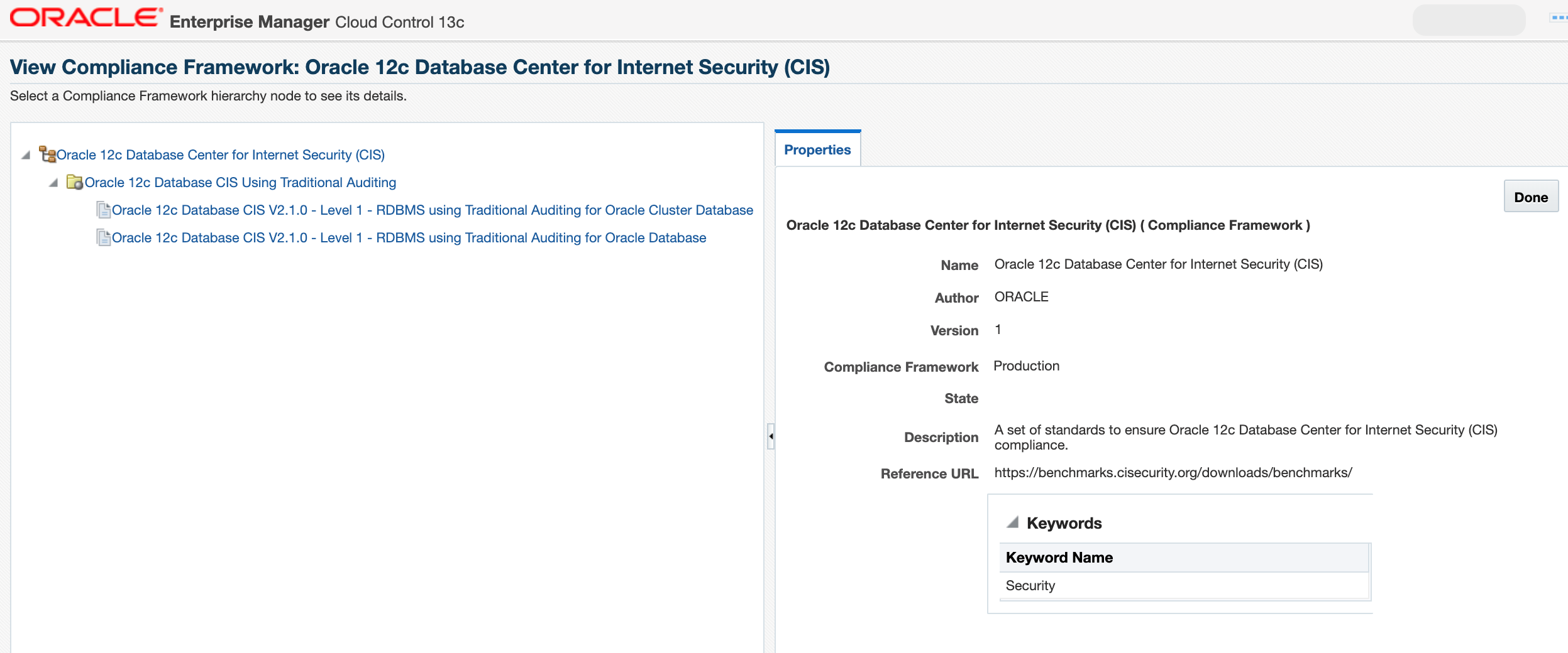 For more information about Oracle Enterprise Manager, visit http://www.oracle.com/enterprise-manager and for more information about the Center for Internet Security (CIS), visit https://www.ciscecurity.org.