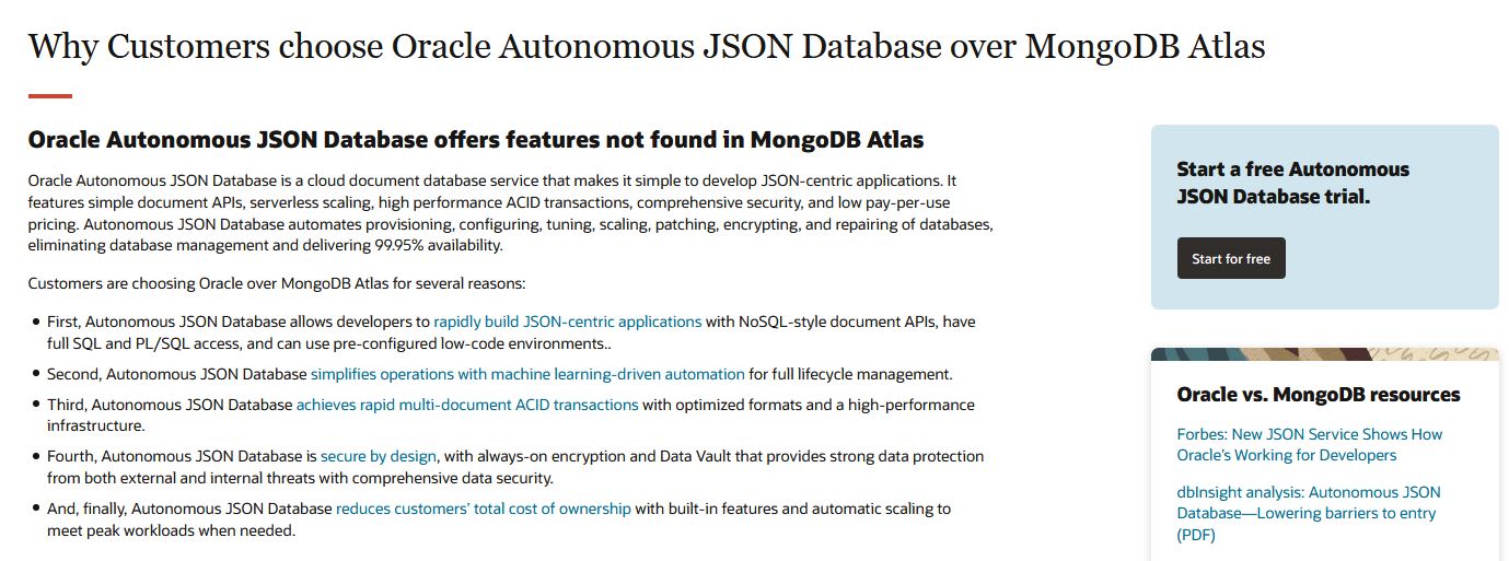 – Read key differences between Autonomous JSON Database and MongoDB Atlas.