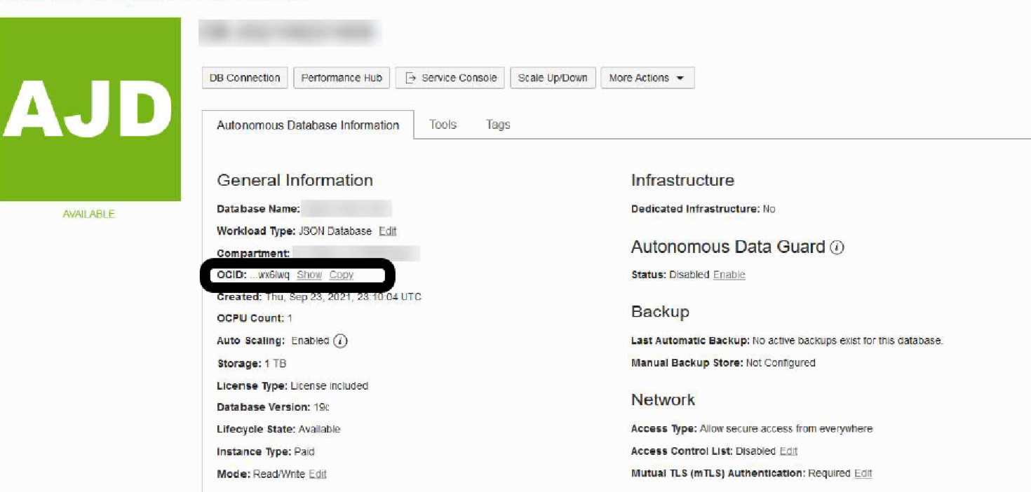 Currently Oracle Database API for MongoDB is in Limited Availability (LA), this means it Is not enabled for every cloud database by default. Users need to send in instance details (OCID) as shown below to Roger Ford roger.ford@oracle.com, a senior member of product management team to participate in the program.