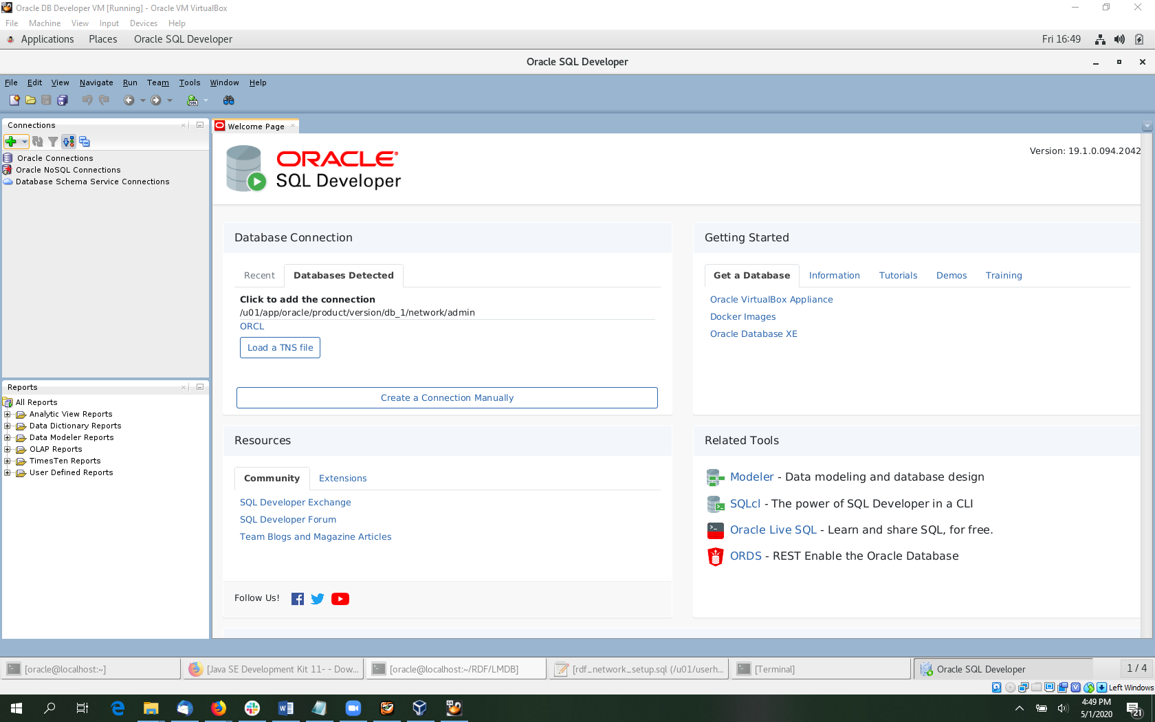 Oracle Database 19.3 should already be installed and running when you start the VM.