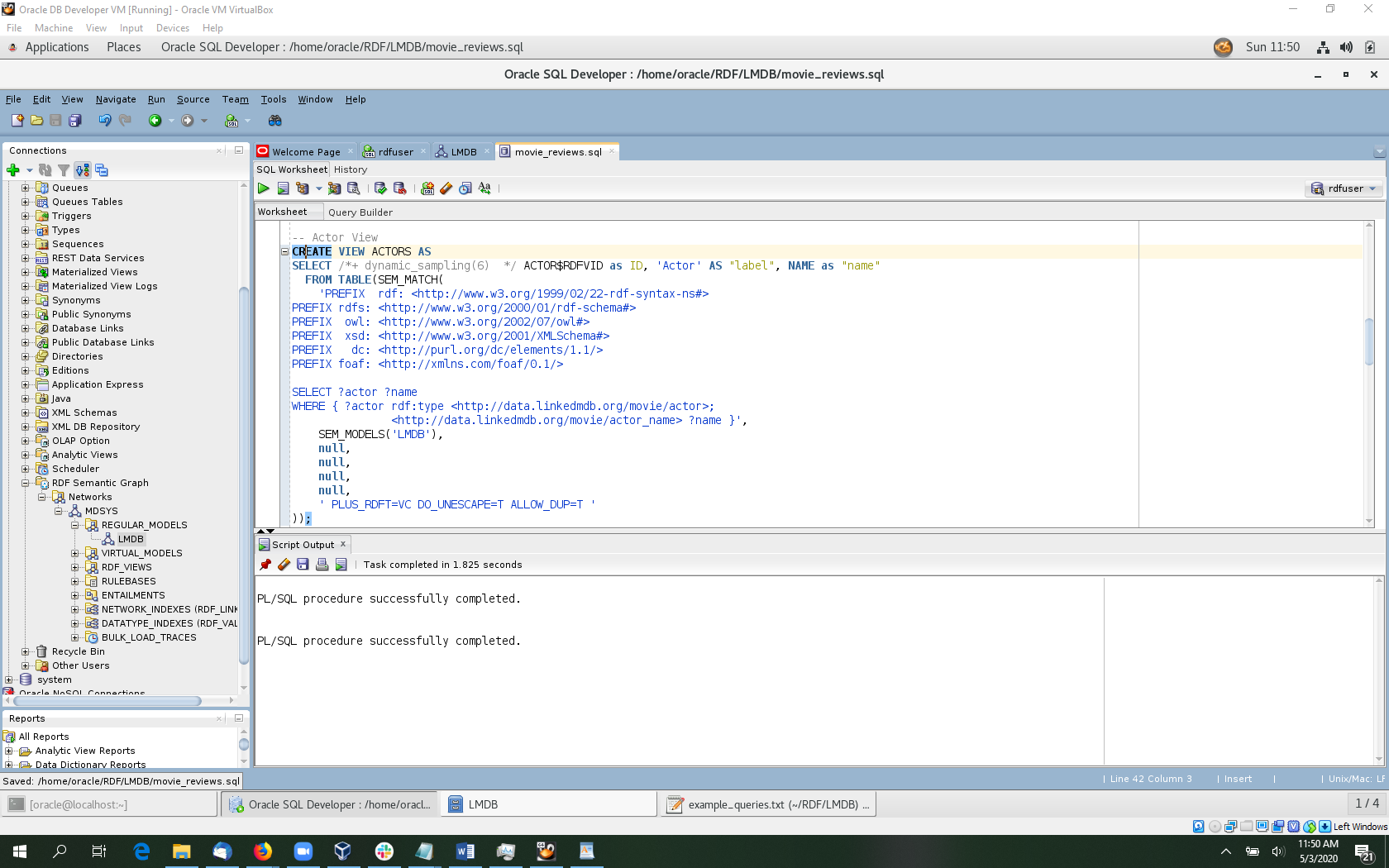Save the file as rdf_network_setup.sql in /home/oracle/RDF.