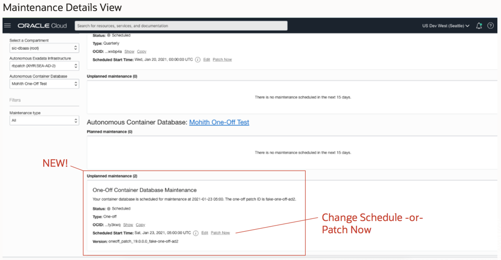 Autonomous Database – Dedicated Infrastructure has just released a new One-Off Patching capability for these mission critical deployments. The feature works in the same manner as normal Autonomous Database quarterly scheduled maintenance, but it is done immediately.