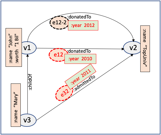 graph  :e12  {  :v1  :donatedTo  :v2  }