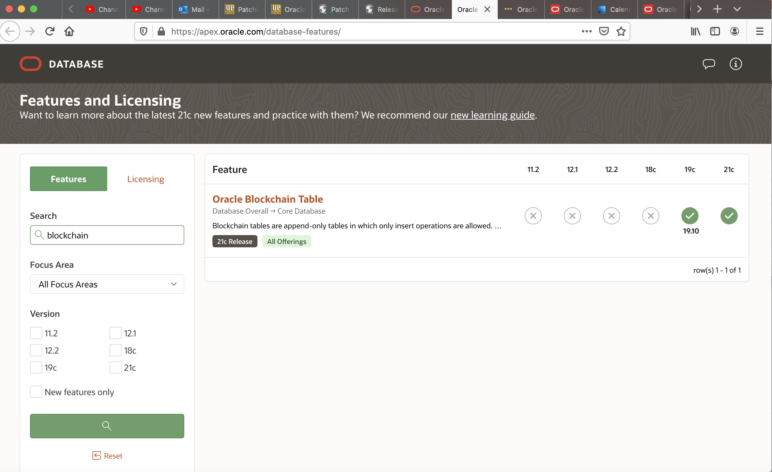 Customers should also be aware that the latest Oracle Database 19c ‘New Features Guide’ has been updated to reflect what’s new in each Oracle Database 19c RU (in addition to original set of new features introduced). Worthy of note is that a few of the new features introduced in Oracle Database 21c have since been backported to Oracle Database 19c, including SQL (Table) Macros (RU 19.7) and Blockchain Tables (RU 19.10), plus Immutable Tables (RU 19.11).