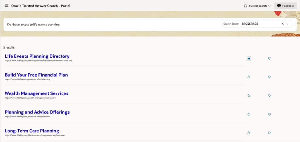 Oracle today announced Trusted Answer Search, a platform that helps teams build natural-language interfaces for applications where answers must be accurate, secure, consistent, and fast. Many enterprise search problems on private enterprise data are application and domain specific and do not require the full generality of LLMs that traditional RAG-enabled chatbots use.