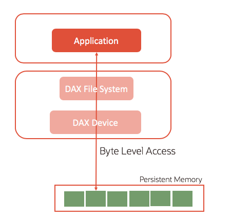 The Direct Access (DAX) operation is important for performance, and the application must tolerate the level of atomicity provided by the Persistent Memory device.