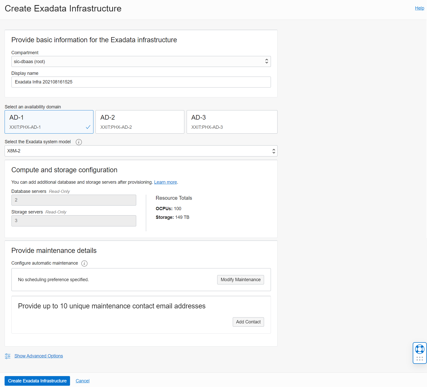 - You can add up to 10 maintenance contact email addresses in the Exadata Infrastructure resource.