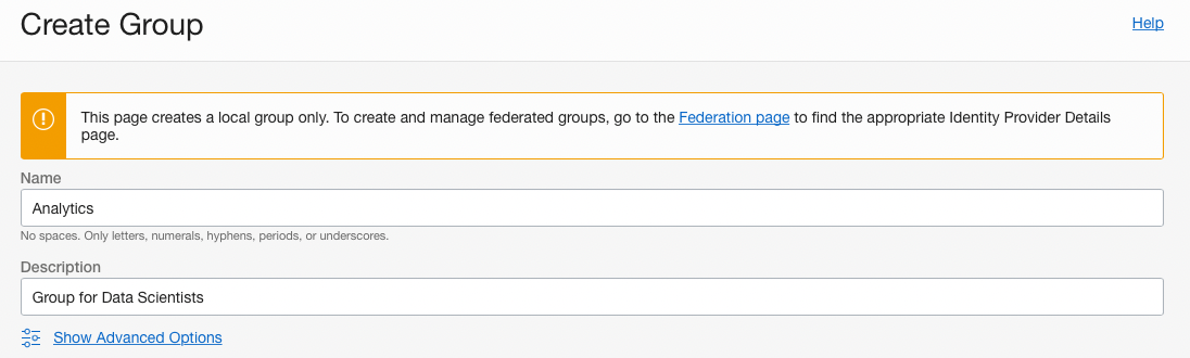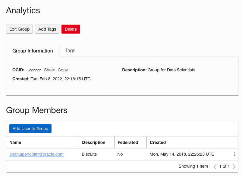 For example, we have a set of connections we want to give to data scientists in an OCI group called Analytics.